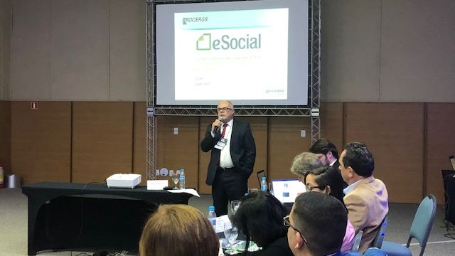A segunda apresentação da manhã foi sobre a experiência da Companhia de Processamento de Dados do Estado do Rio Grande do Sul (Procergs) com o eSocial, relatada pelo seu diretor administrativo financeiro, Paulo Zborowski. Foram citados os impactos na administração de pessoal, na segurança e saúde de trabalho, citando os eventos implantados e os que ainda faltam. Foi apresentado o cronograma atual da Procergs para implantação do sistema eSocial, citando as dificuldades encontradas e ressaltando os benefícios. Oportunamente, representantes de outras empresas relataram e trocaram experiências sobre a implantação do eSocial nos seus respectivos estados.