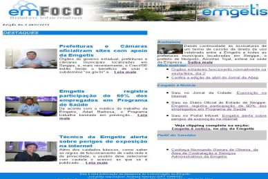 A cada mês, a Empresa Sergipana de Tecnologia da Informação (Emgetis) publica o seu boletim informativo eletrônico, enviando-o a todos os usuários do Expresso Livre Sergipe.