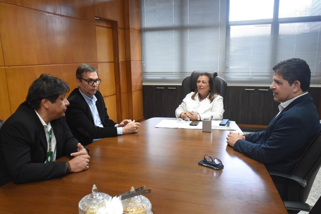 Em visita de cortesia ao Tribunal de Contas do Estado de Sergipe (TCE-SE), o presidente da Empresa Sergipana de Tecnologia da Informação (Emgetis), Bráulio Abreu, foi recebido pela presidente e conselheira Susana Azevedo. O diretor de Administração e Finanças da Emgetis, Fabrizio Pereira Dantas Silvestre, e Miguel Melo, diretor de Modernização e TI do TCE, também participaram da reunião.